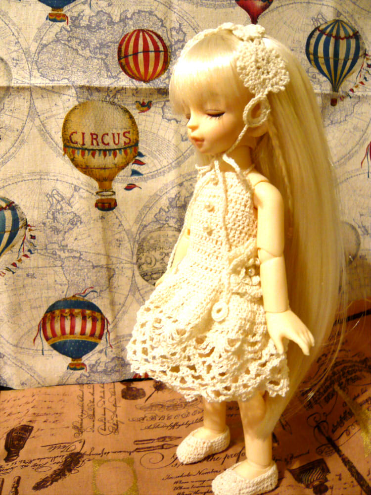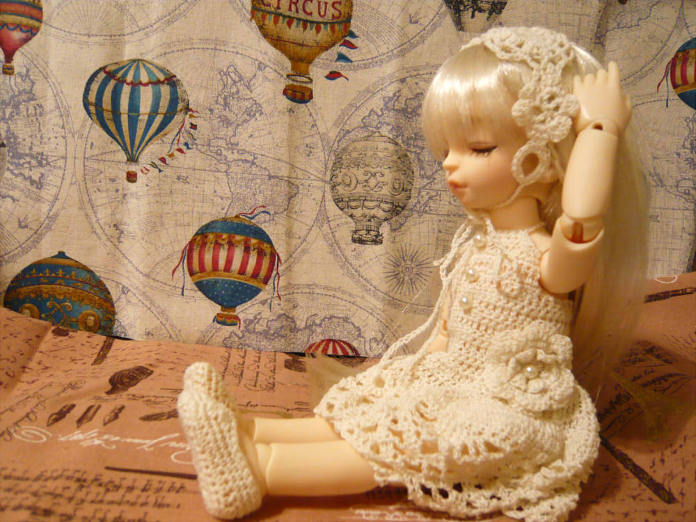 何か、ドールサイト様を回っていたら、無性に服を作ってみたくなりまして、かぎ針君であみあみして作ってみました・・・・。